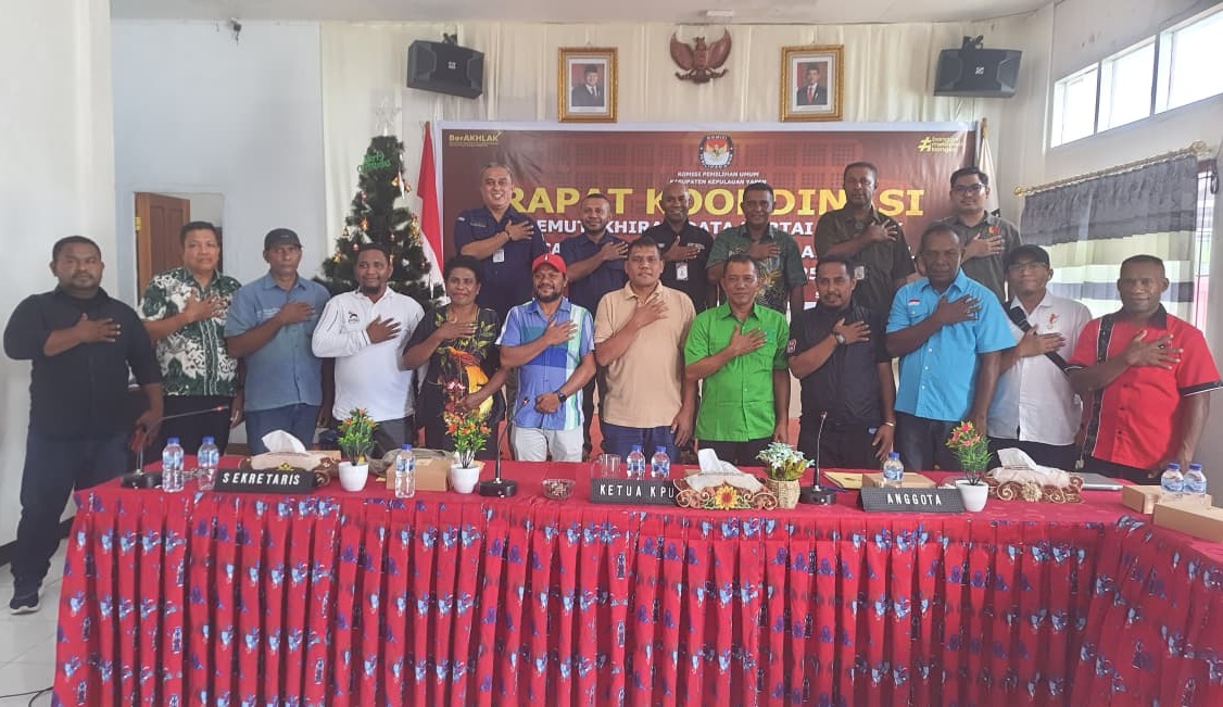 Serui, Bawaslu Yapen – Anggota Bawaslu Kepulauan Yapen Hofni Y. Mandripon mengungkapkan hasil Pemetaan Potensi Kerawanan dan Uji Petik pada Pemutakhiran Data Partai Politik secara Berkelanjutan (PDP2B) dalam Rapat Koordinasi yang diselenggarankan sabtu sore di Kantor KPU Kabupaten Kepulauan Yapen.
